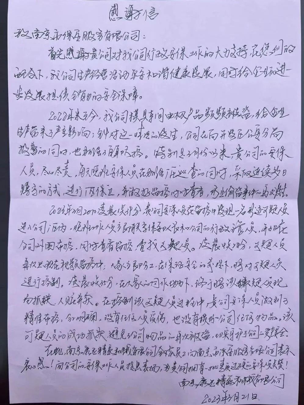 公司領(lǐng)導(dǎo)表示,保安員僅僅是做了分內(nèi)工作就得到康尼集團如此高規(guī)格的表彰,我們深受鼓舞,感謝康尼集團對我司的信任和支持,讓我們沒有理由不把本職工作做好。公司6名保安員從發(fā)現(xiàn)可疑目標(biāo)到精心布控再到奮不顧身勇擒竊賊,體現(xiàn)了南京市保人頑強的工作作風(fēng)。為鼓勵先進、樹立典型,在全體員工中營造堅守初心、愛崗敬業(yè)、履職盡責(zé)的濃厚氛圍,公司將予以表彰獎勵。希望全體員工能夠繼續(xù)秉承“服務(wù)無極限、安全到永遠(yuǎn)”的服務(wù)理念為保障客戶單位的平安做出自己的貢獻。